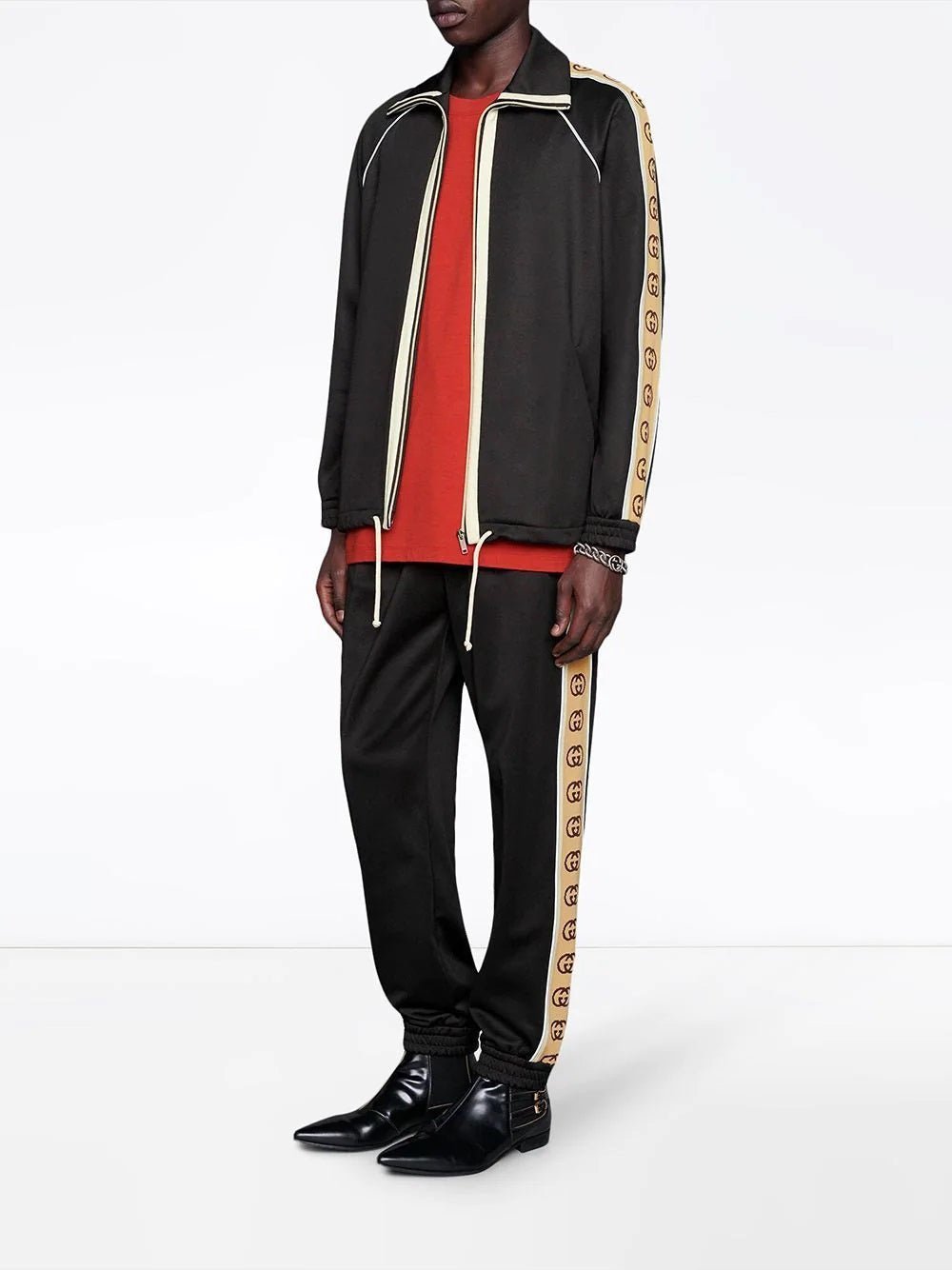 Gucci Black Technical Jersey GG Stripe Tracksuit Set